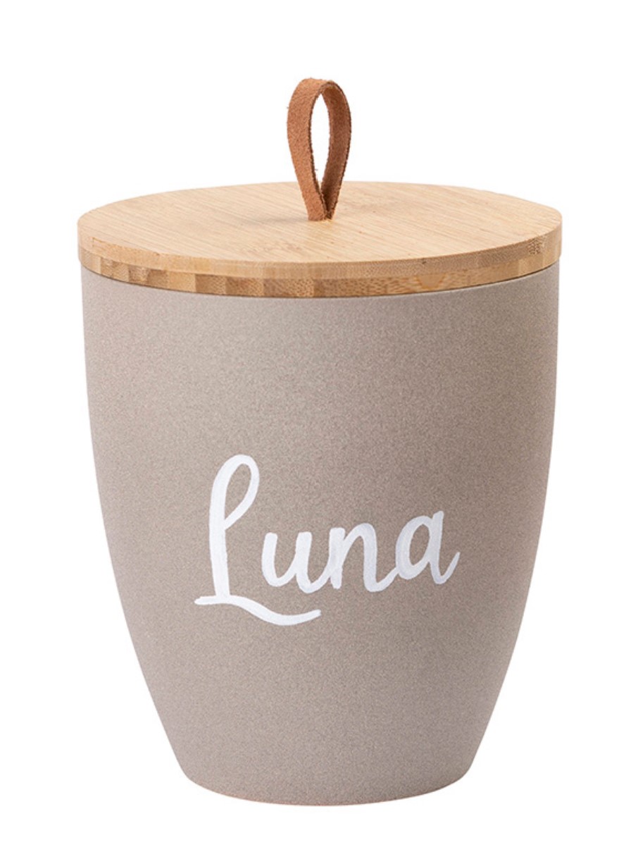 Lassen Sie Ihre Tierurne beginnend mit AN....... von einer Künstlerin mit dem Namen Ihres Lieblings beschriften. Schriftart und Farbe sind dabei vorgegeben. Maximale Anzahl der Buchstaben ist 15.