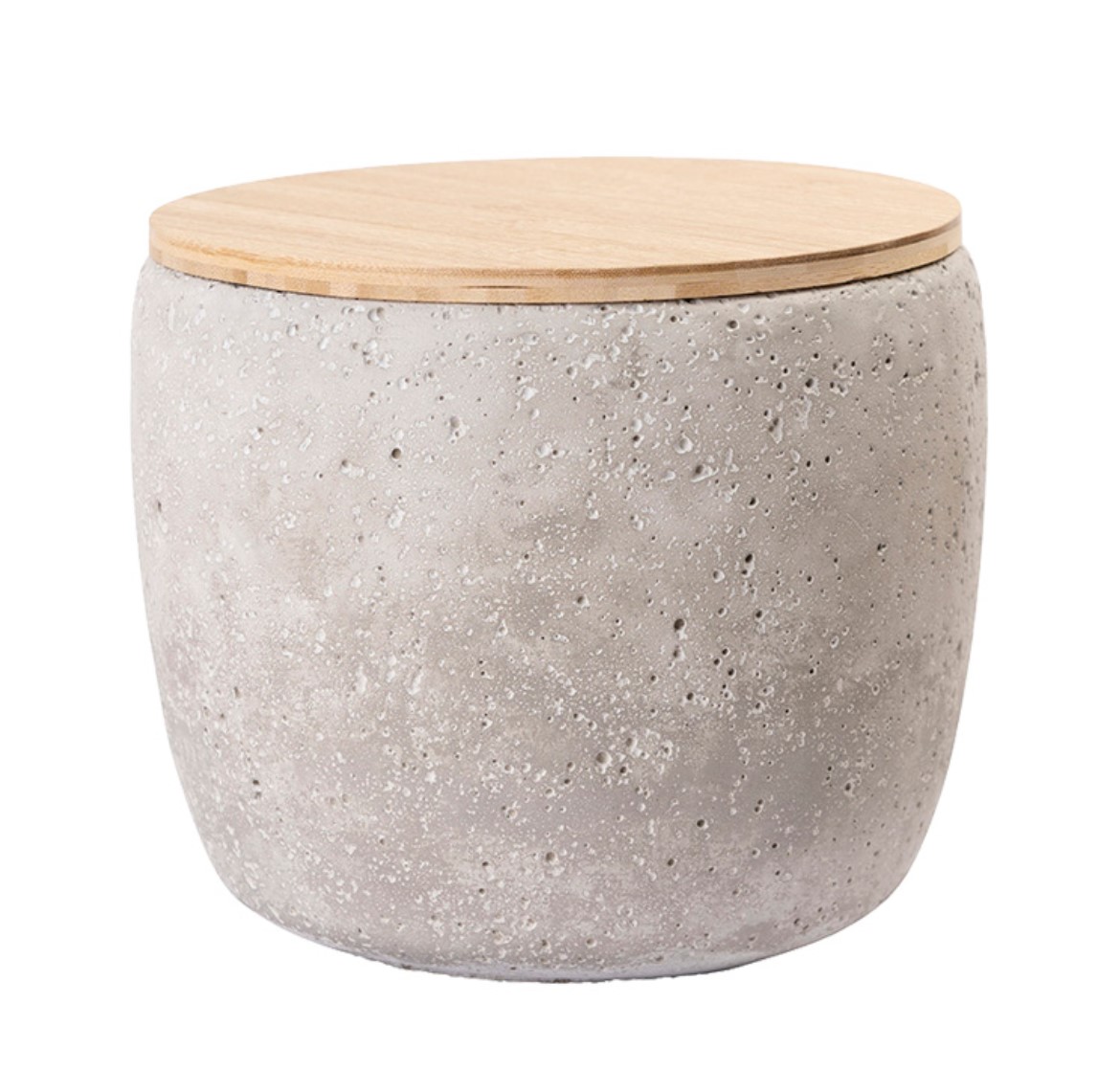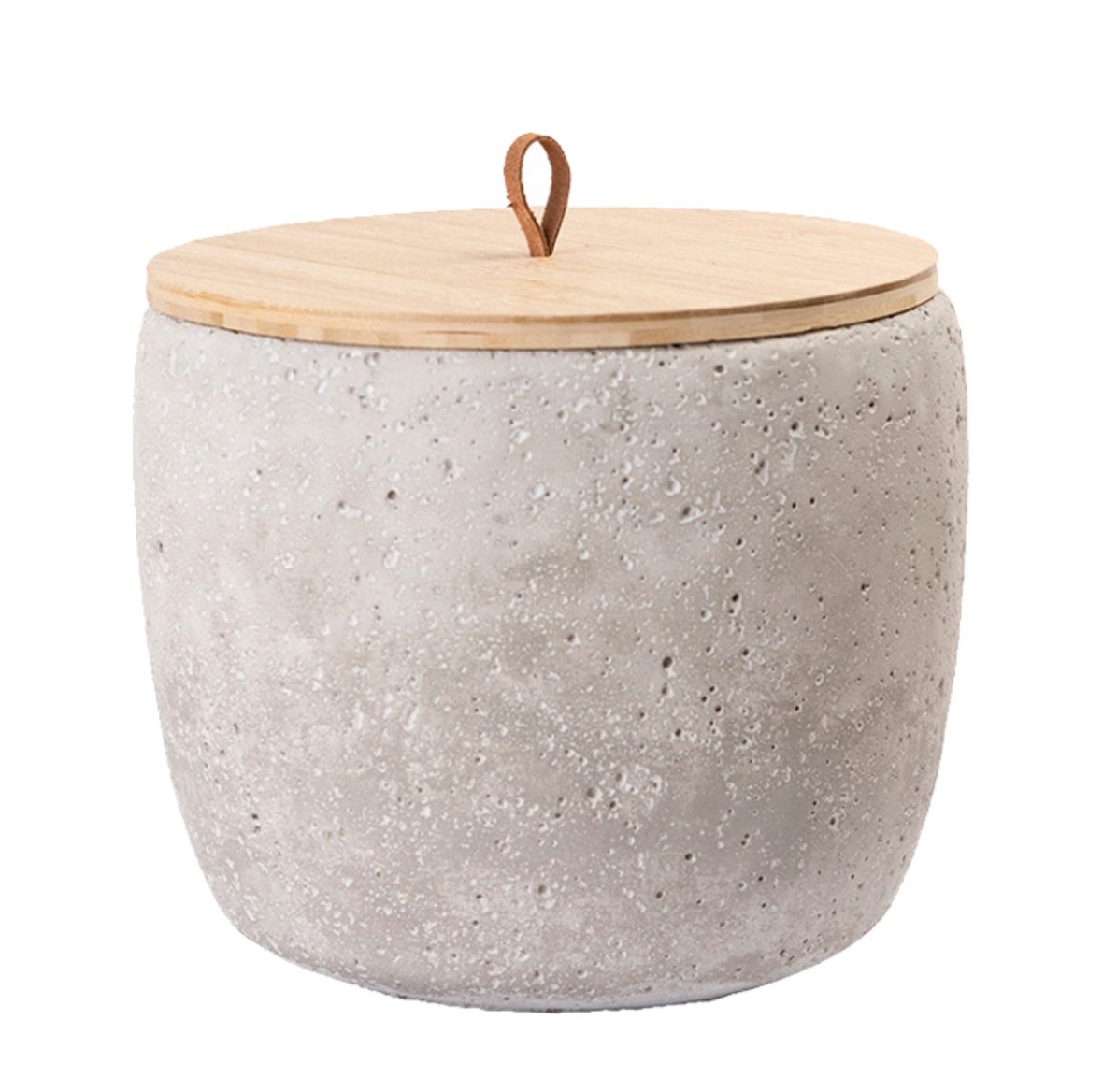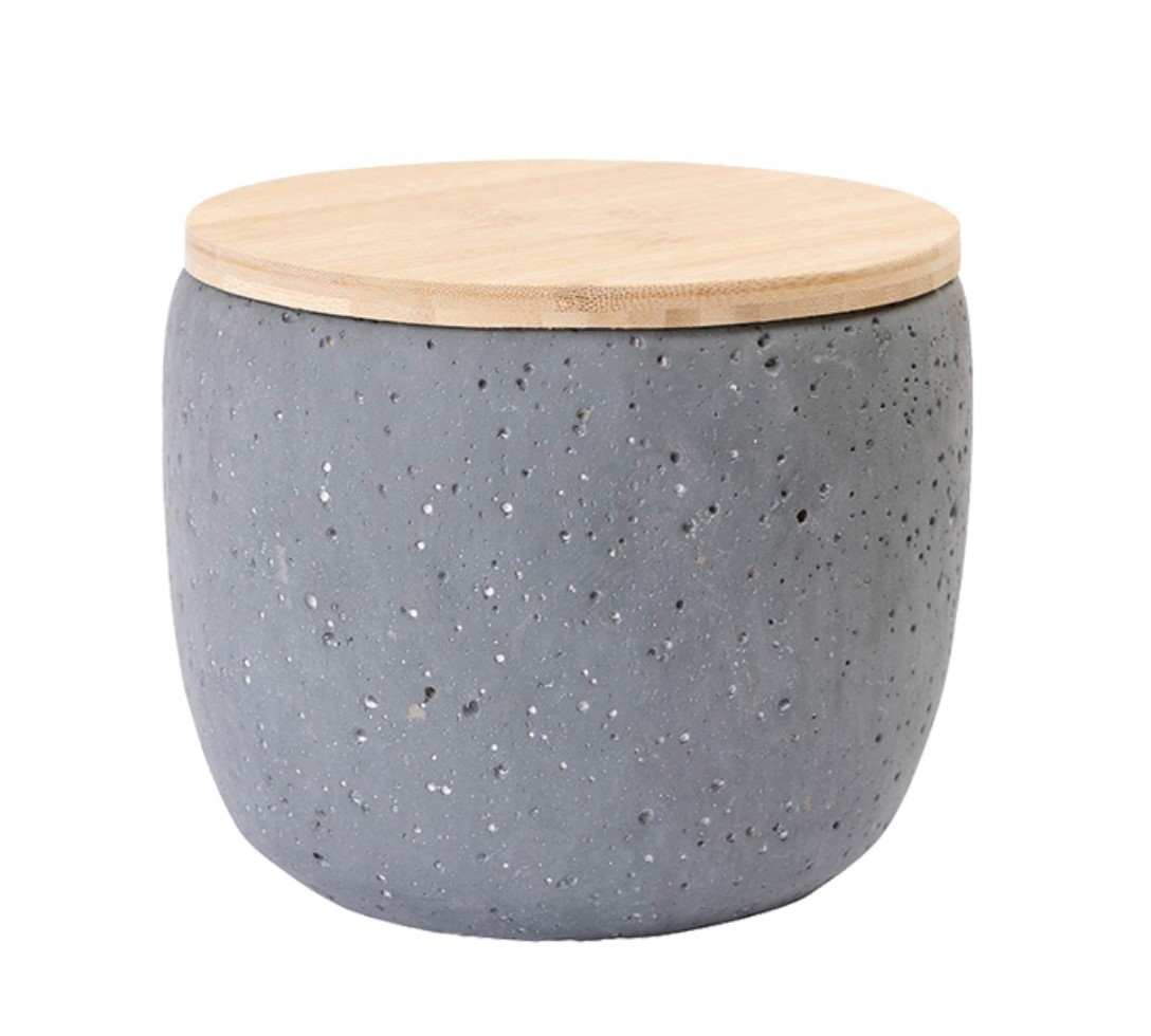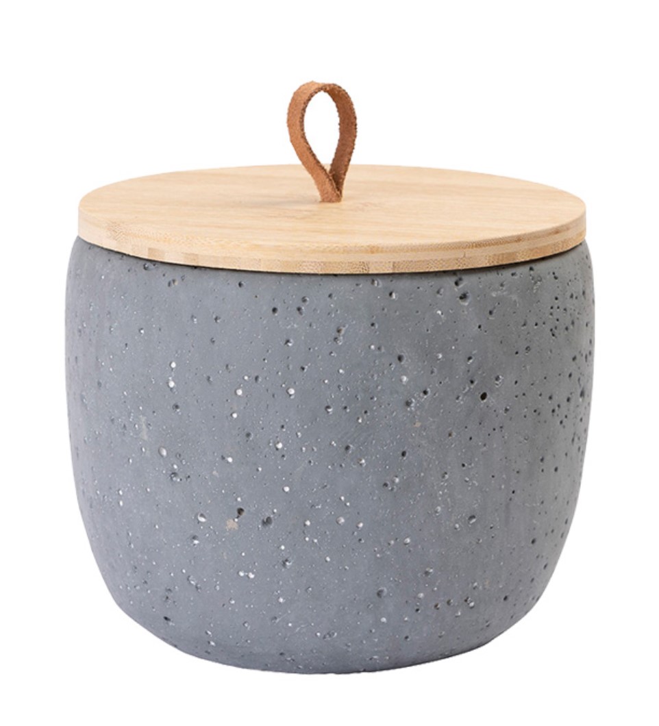Tierurne aus Keramik in Betonoptik. Die großpurige und rauhe Struktur verleiht der Urne den Ausdruck von Rubustheit. Verschlossen wird die Urne mit einem Holzdeckel aus Bambusholz, der wahlweise mit oder ohne einer Lederschlaufe ausgestattet ist. Gefertigt werden die Urnen aus hochwertigen Materialien in einem Familienbetrieb in Europa.